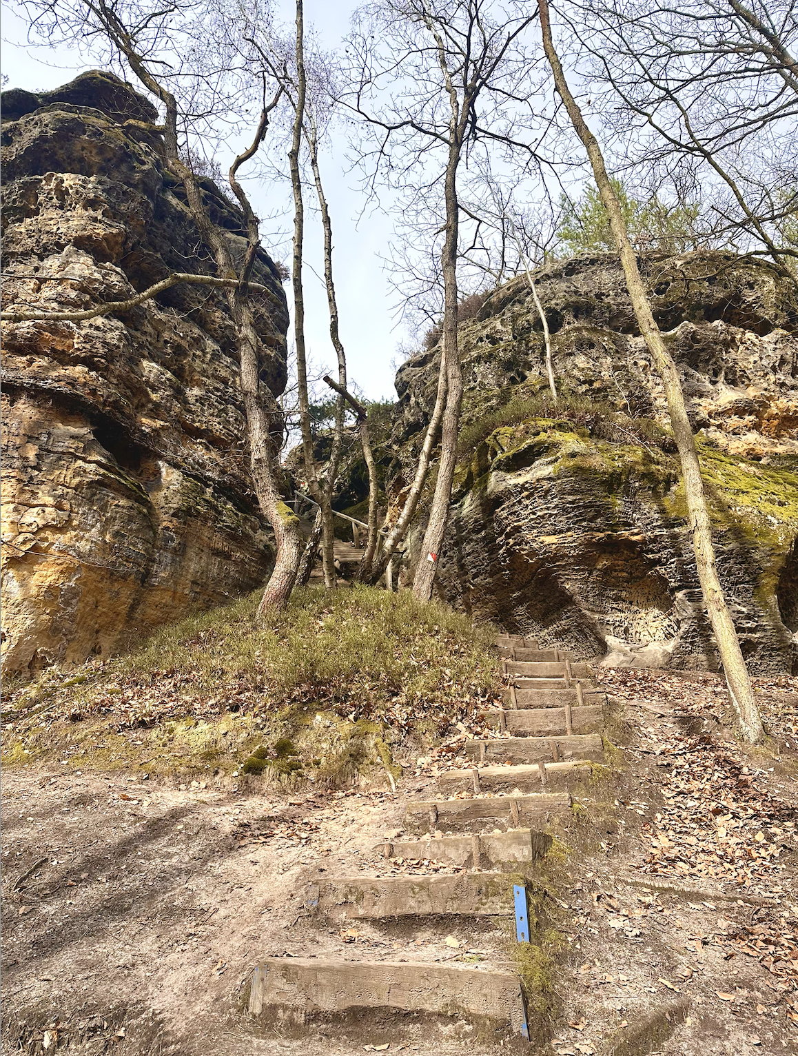 Po chvíli dojdete k vyhlídce s pohádkovým výhledem na hrad Kokořín. Terén je místy strmější a v jednom úseku si i sešplháte po žebříku, proto nezapomeňte obout pořádnou trekovou obuv! Po cestě se vám budou otevírat zajímavé pohledy na různé tvary pískovcových skal. Na závěr se napojíte zpět na zelenou trasu, po které jste přišli.