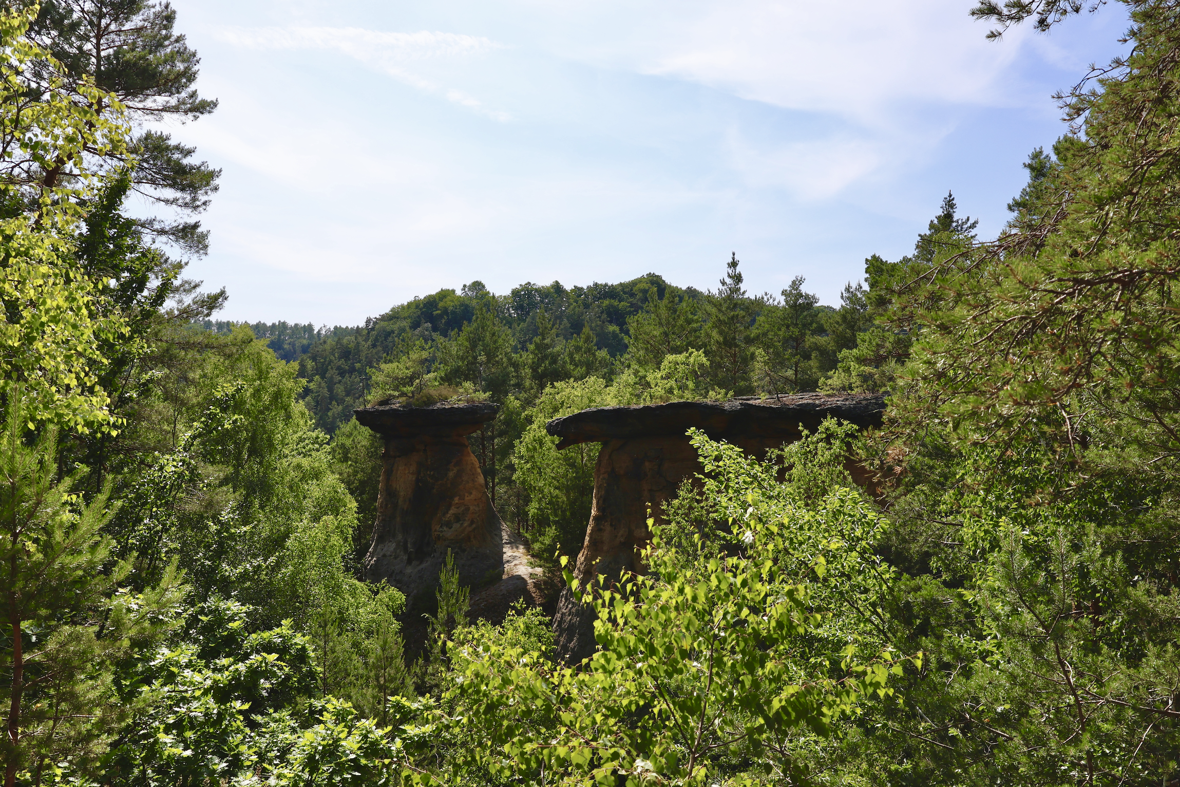 Typickým symbolem Kokořínska jsou takzvané “Pokličky”. Pískovcové útvary připomínající houby. Výchozím bodem je Lesní parkoviště Pokličky, odkud se vydáte přes silnici a vyšlápnete pořádný kopec po přírodním schodišti. No a pak už se jen můžete kochat zajímavými výhledy na pokličky!